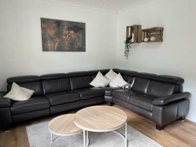 - Wohnkomfort: Großes Wohnzimmer mit einer gemütlichen Couchlandschaft und einem Flachbild-TV für entspannte Stunden.