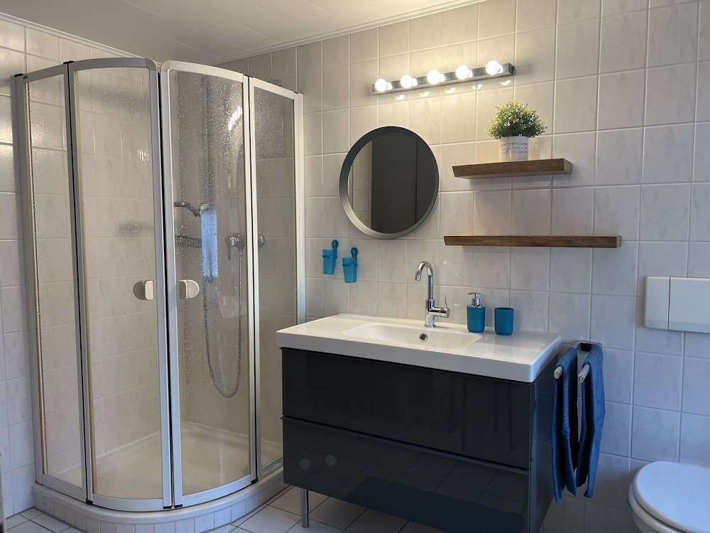 - Zwei Badezimmer: Jeweils mit Dusche, WC und Waschbecken – ideal für einen stressfreien Start in den Tag.